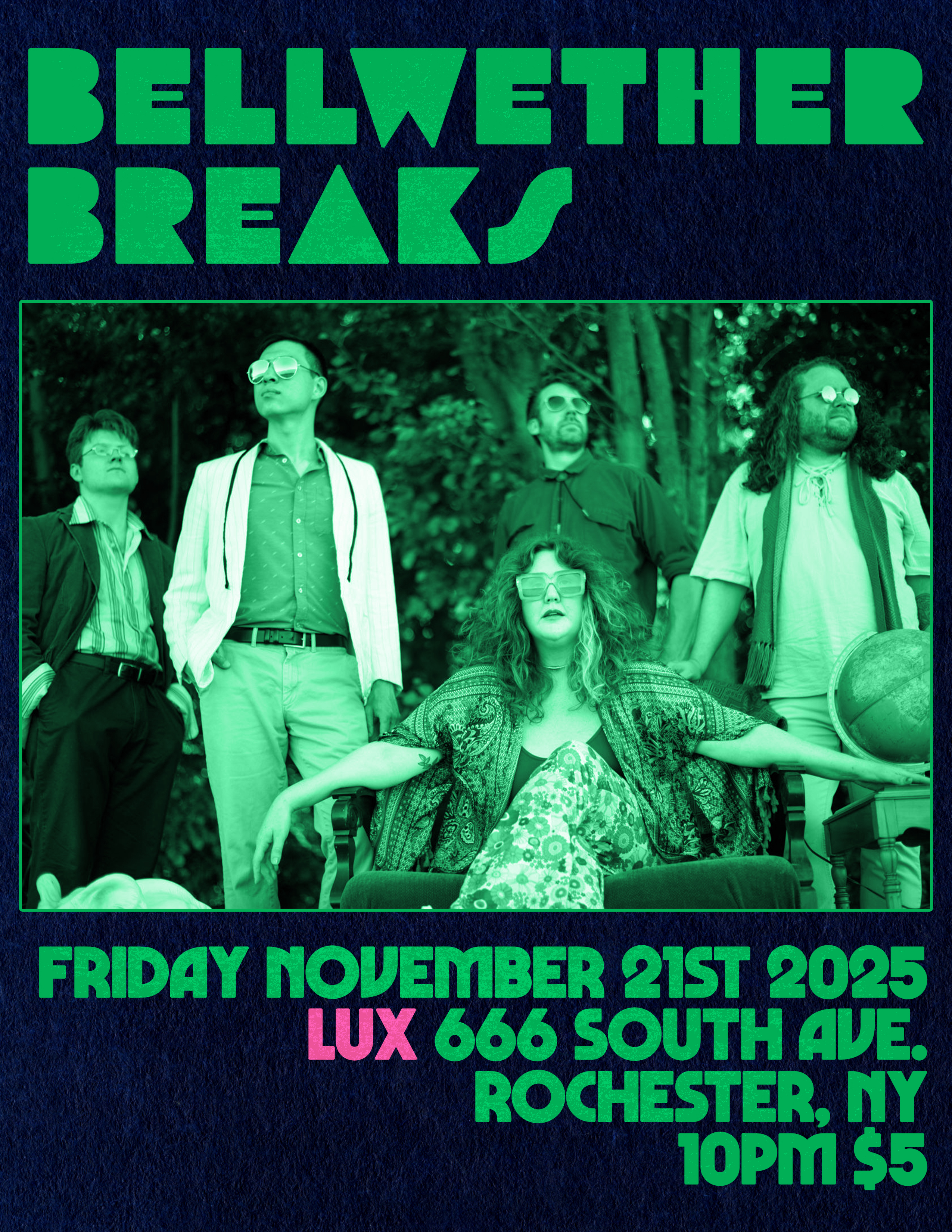 Bellwether Breaks has a groove so irresistible it won't let you walk out the door. This new band draws its life blood from slinky 60s Soul and early Rock n Roll, with a smattering of angular 90s grit. Their songs are fun and familiar yet unpredictable.